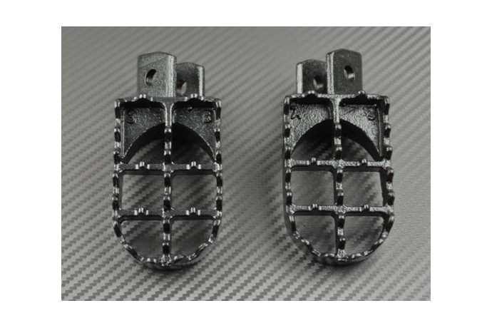 Es sei denn Sie haben ein Restaurierungsprojekt in Angriff genommen, oder Ihre alten Fußrasten haben ausgelebt, oder sie sind einfach nur zu klein um Ihnen den sicheren Grip und Komfort zu geben, den Sie sich erhoffen ! Wie auch immer sind Sie jetzt auf der Suche nach Cross-Fußrasten um Ihre Maschine zu verkleiden, aber die angebotenen Tarife von Markenhändlern und Zubehörlieferanten, lassen Sie stärker und höher Springen als Ihre verrücktesten Figuren. Anstatt sich in ein zweifelhaftes Basteln oder mit Fußstützen die bloß den Namen tragen zu begeben, bietet AVDB Ihnen dieses Paar Cross-Fußrasten an, welche direkt an Stelle der Alten, ohne irgendwelche Veränderungen, montiert werden.
