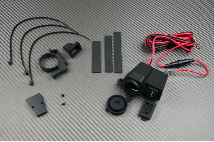 A highly convenient item to charge your smartphone, GPS, camera, MP3 player, and any other electrical equipments that you may want to charge during a trip. Furthermore, these USB and cigarette-lighter plugs are waterproof thanks to their rubber lids, perfect if you ride under a small rain !