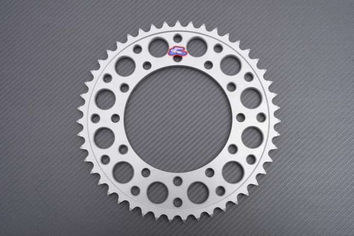La gama Ultralight está diseñada para competidores que buscan rendimiento puro. Es lo último de la familia Renthal. Su base es la gama GP. Este producto ha sido optimizado para hacerlo aún más ligero y potente. La gama Ultra Light cambia el acero por el aluminio CNC 7075 T6, un material ligero pero muy resistente. La forma de los dientes facilita la evacuación de impurezas y minimiza la pérdida de potencia por rozamiento con la cadena. Para aligerar la pieza sin reducir su resistencia, se perforan orificios en el cuerpo de la pieza en puntos estratégicos. ¡Con la versión Renthal Ultra-Light ganarás en eficacia, peso y durabilidad! - Versión Twinring: