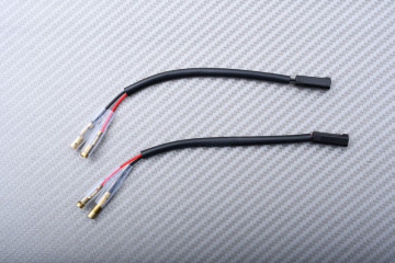 Una coppia di cavi adattatori che consentono di collegare gli indicatori universali direttamente ai connettori originali della moto grazie al sistema plug-and-play.