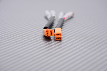 Una coppia di cavi adattatori che consentono di collegare gli indicatori universali direttamente ai connettori originali della moto grazie al sistema plug-and-play.