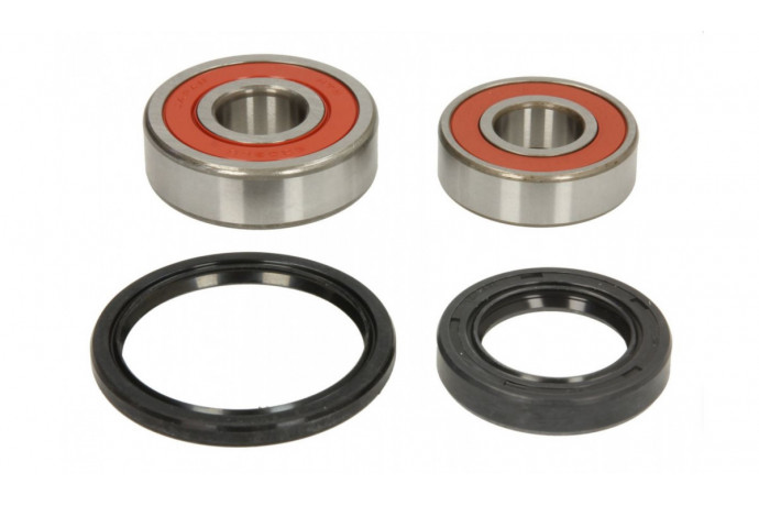 Composti dal numero necessario di cuscinetti (compreso il porta corona per alcuni kit posteriori) e dalle guarnizioni spi a seconda del modello, questi kit di eccellente qualità consentiranno di percorrere molti chilometri in sicurezza.