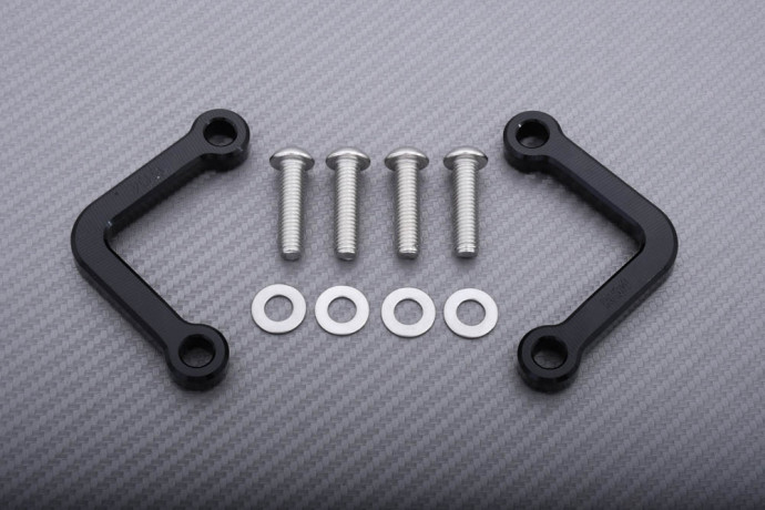 Coppia di adattatori in alluminio per fissaggio cinghia, da posizionare nelle staffe passeggero. Specifico per i modelli Aprilia elencati nella tabella in fondo alla descrizione.