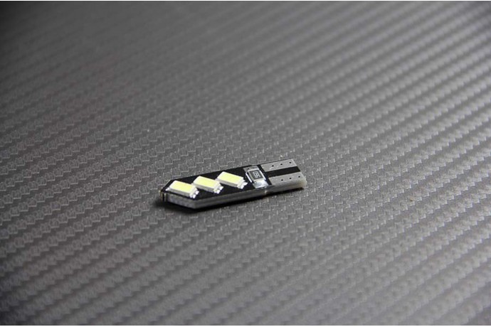 Luce a Led T 10 W6W (6 LED per lampada). Modello extra piatto.Led composto da una base piatta T-10, tipo di base che equipaggia la (stra) grande maggioranza delle moto dal 1998 ad oggi.Adatto anche per oltre il 90% della produzione automobilistica dagli anni 2000: fanale, plafoniera, bagagliaio, illuminazione targa, ecc.