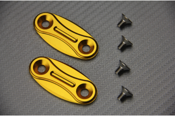 Per garantire la finitura quando si passa ad un utilizzazione su pista, o se si sostituite gli specchietti d'origine per modelli che si adattano sull'estremità del manubrio; questi tappi per gli specchietti (tappi in alluminio) permettono di coprire i due fori per il fissaggio sulla piastra superiore forcella.