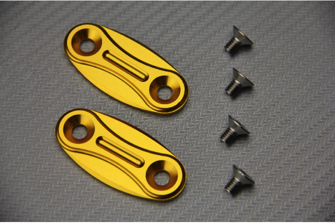 Coppia tappo fori specchietti alta gamma, modello in alluminio CNC 6061 anodizzato, specifico per molti modelli HONDA (lista non esaustiva in  basso)